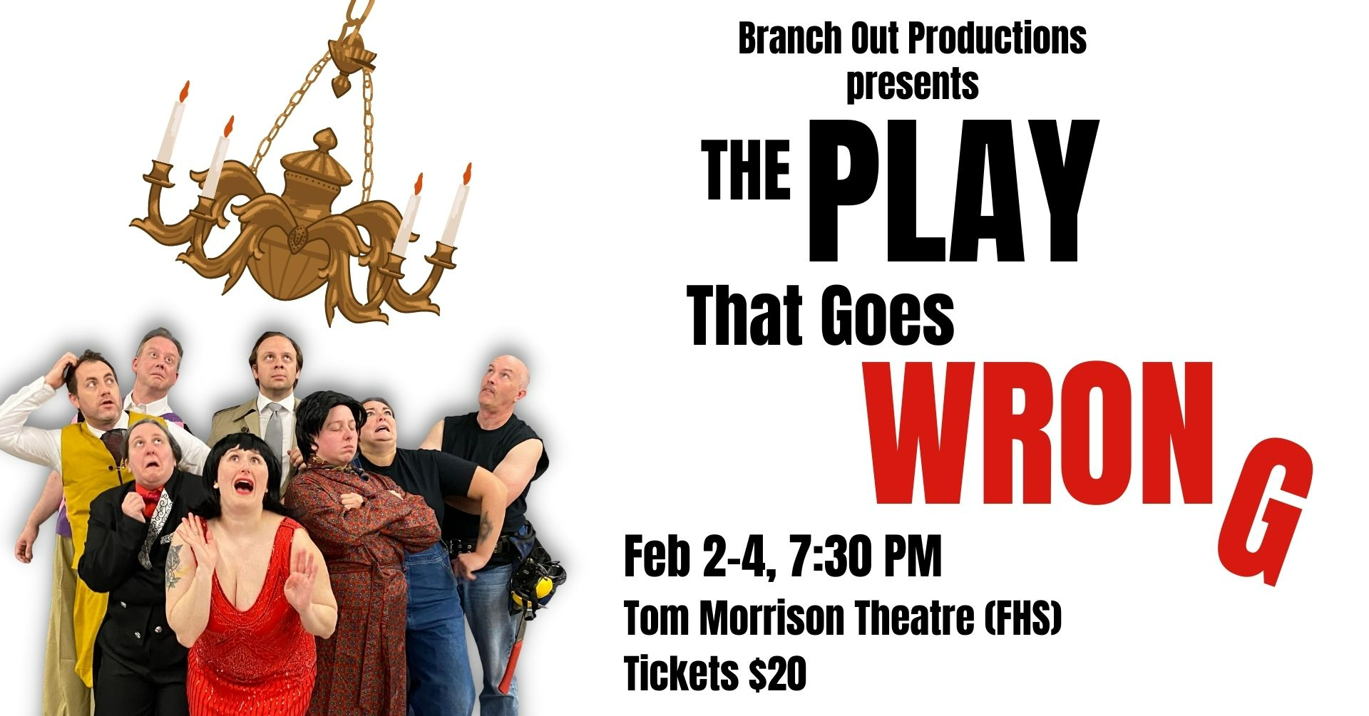 Branch Out Production presents THE PLAY THAT GOES WRONG Saturday, Feb 4th, 7:30 PM Tom Morrison Theatre (FHS)