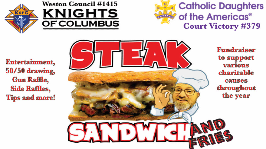 Grilled Ribeye Steak Sandwich (choice of toppings include fried peppers, grilled onions, cheese), Fresh Cut French Fries, Drink and Dessert. Eat In, Carry Out or Drive Thru. Meal purchase includes admission to entertainment and opportunities to purchase tickets for 50/50 drawing, premium guns raffle, tips, side raffles and more!