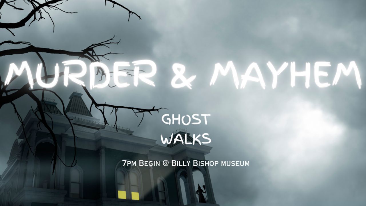 Our Murder and Mayhem Ghost Walks are back again this summer! Tour starts on the Museum's verandah at 7:00 pm, feel free to come early on Wednesdays as the Museum is open late and you can browse our gift shop!