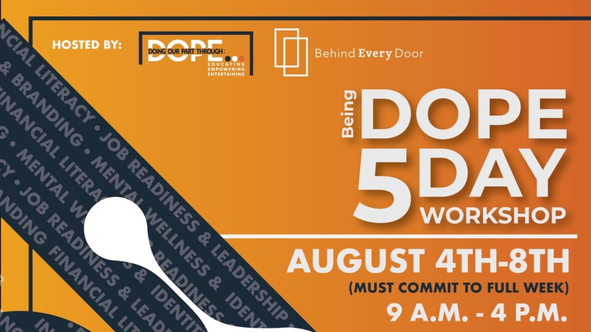 Includes full access to all 5 days of the Being DOPE Workshop (August 4–8 in hosted by Behind Every Door in Dallas, lunch each day, snacks, workshop materials, and participation in the final student showcase and Andretti Indoor Karting & Games.