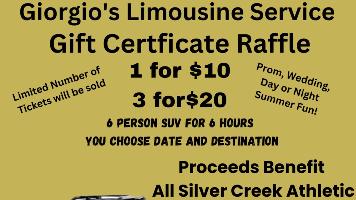 Silver Creek Athletic Booster Club, Inc. will be raffling off Giorgio's Limousine 6 person 6 hour SUV Gift Certificate.